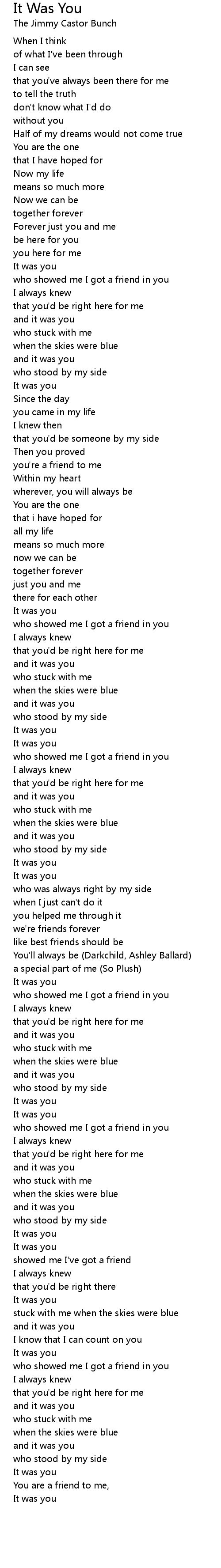It Was You 歌词