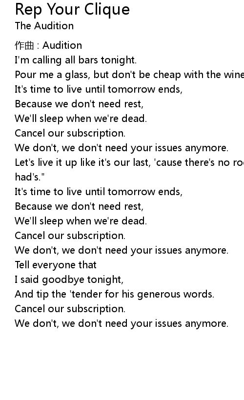 | 歌曲 | Rep Your Clique |