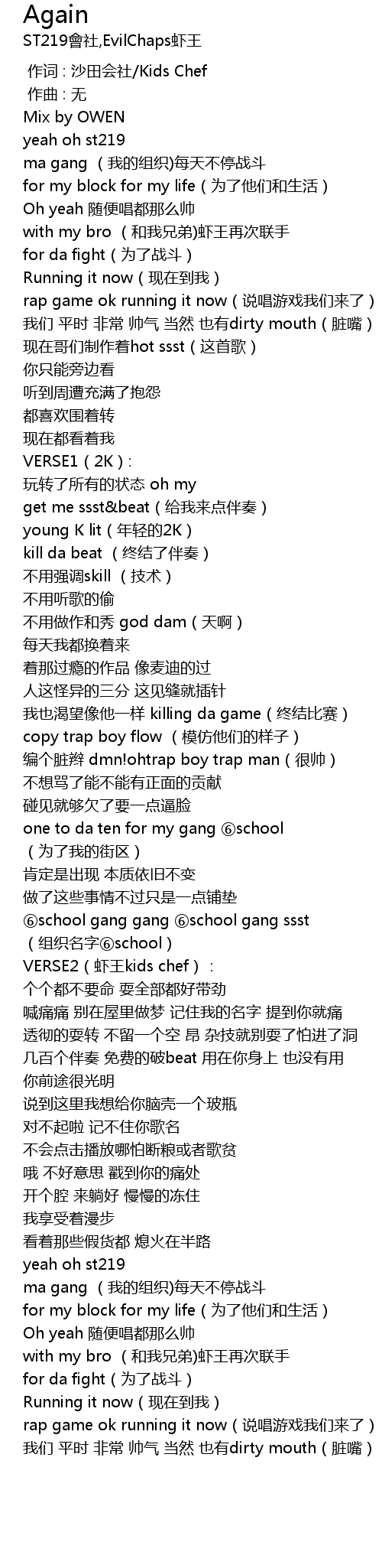 | [01:49.640] | ma gang (我的组织)每天不停战斗 |