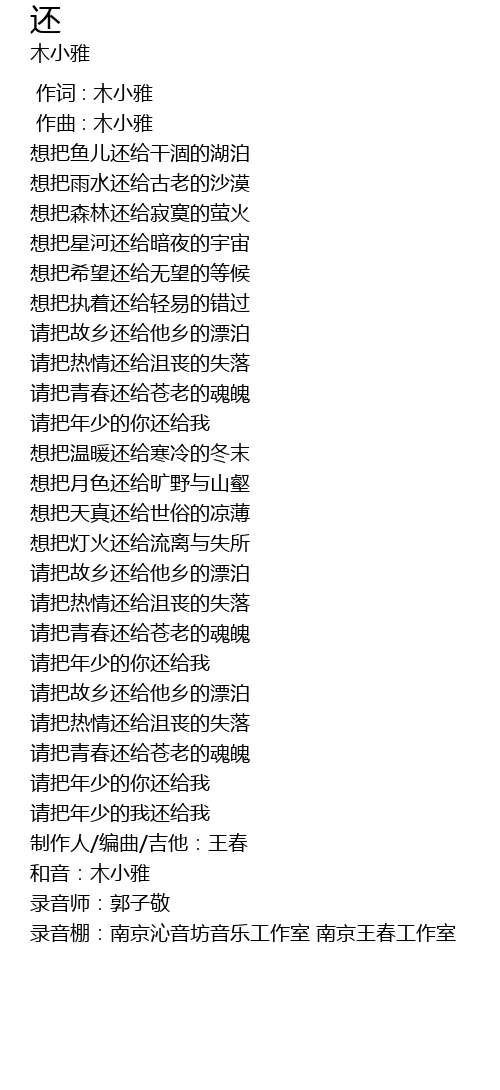 | [00:00.00] | 作词 : 木小雅 |