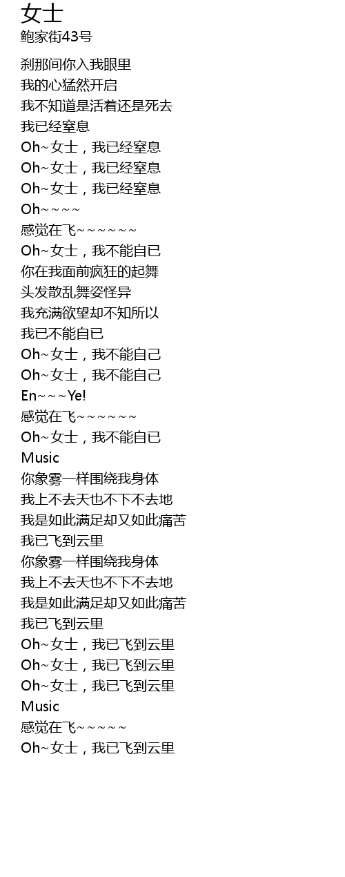 | [00:43.840] | Oh~女士,我已经窒息 |