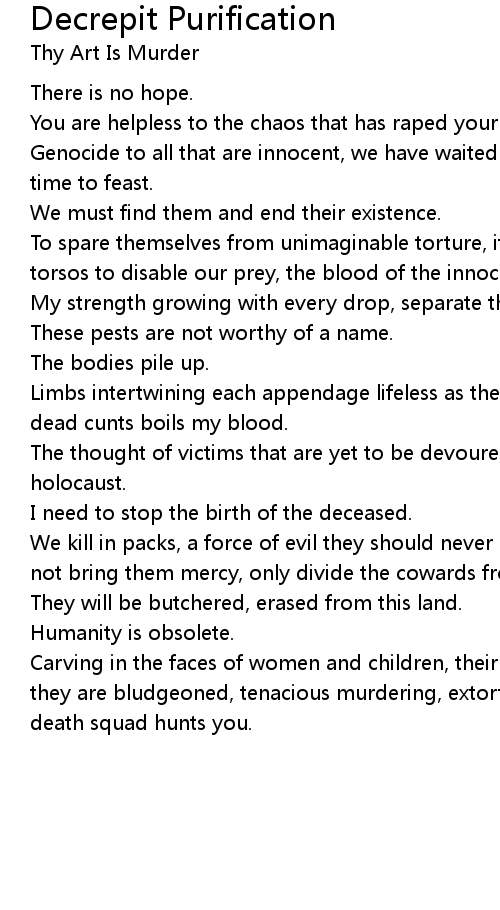 Genocide to all that are innocent, we have waited for this day and now it is time to feast. |