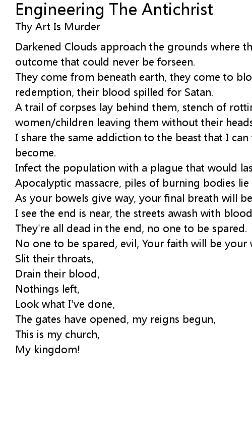 They come from beneath earth, they come to block out the sun, there will be no redemption, their blood spilled for Satan. |