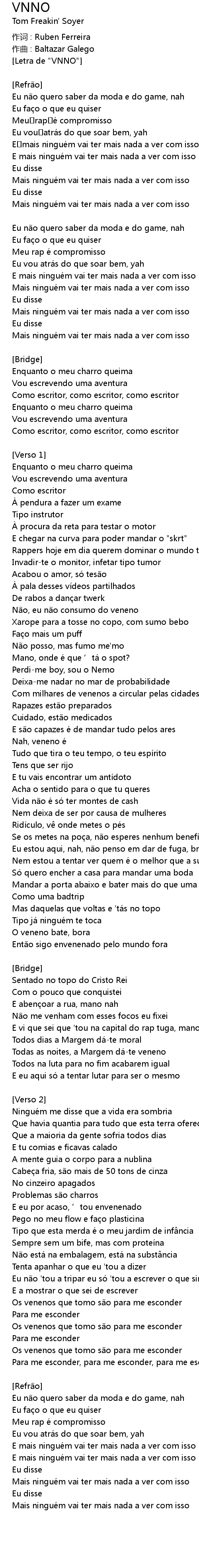 | Letra de " VNNO" | |