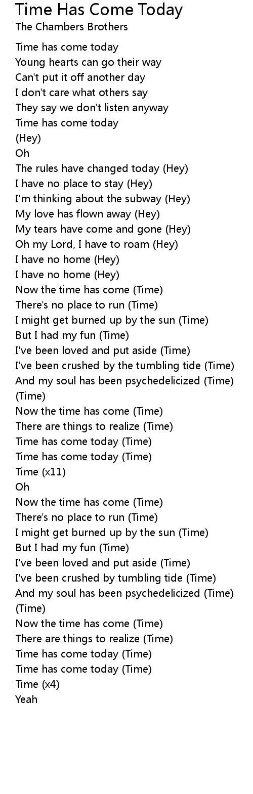 Time Has Come Today 歌词