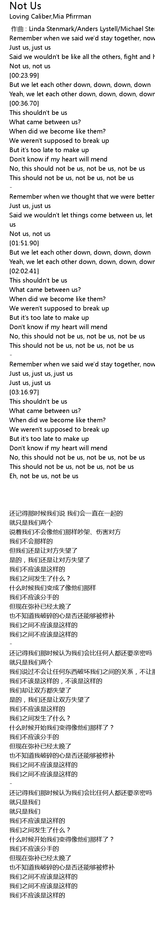 | [00:55.99] | This should not be us, not be us, not be us |