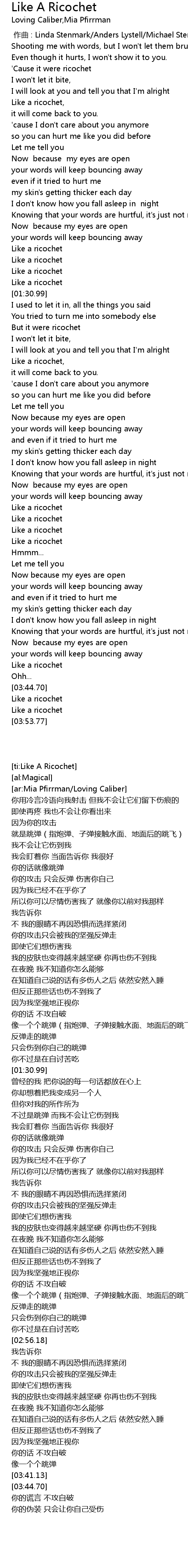 | [01:53.46] | 你的话就像跳弹 |