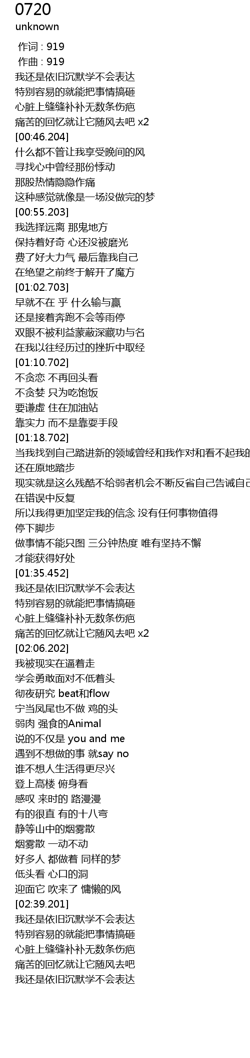 | [00:00.000] | 作词 : 919 |
