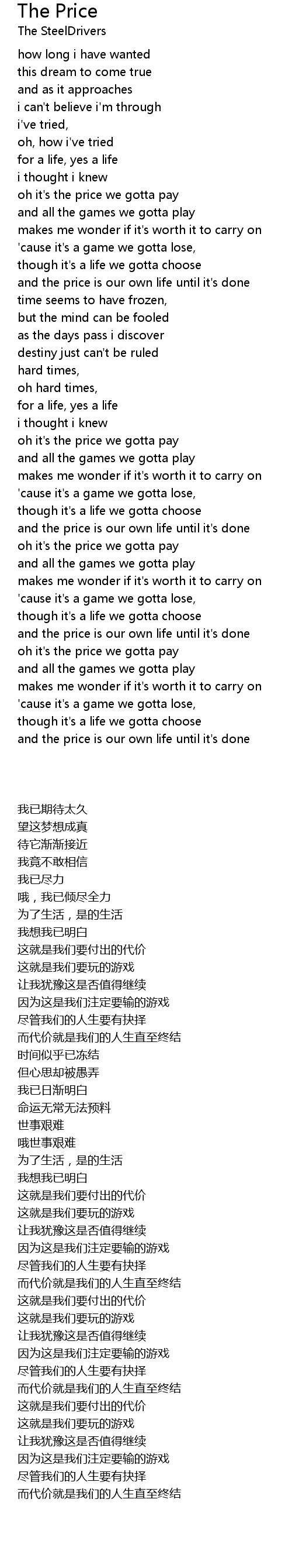and the price is our own life until it's done |