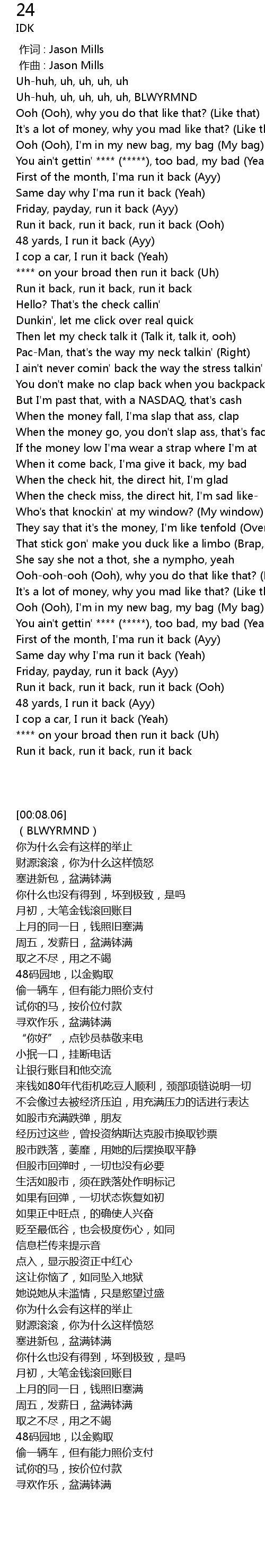 | [00:17.49] | It' s a lot of money, why you mad like that? Like that |