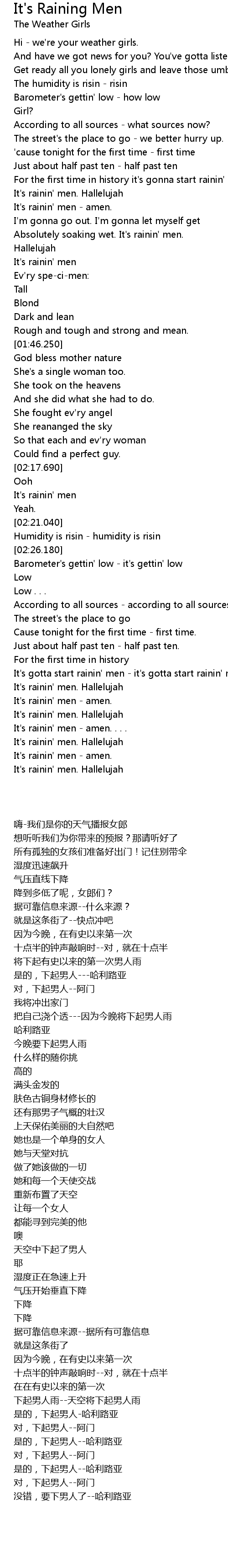 It's rainin' men - amen. . . . |