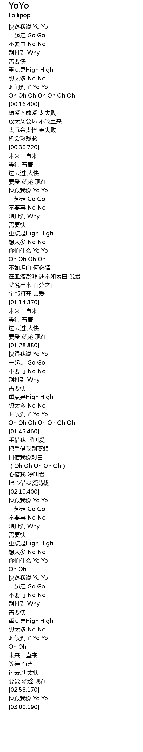 | [02:58.700] | kuài gēn wǒ shuō Yo Yo |