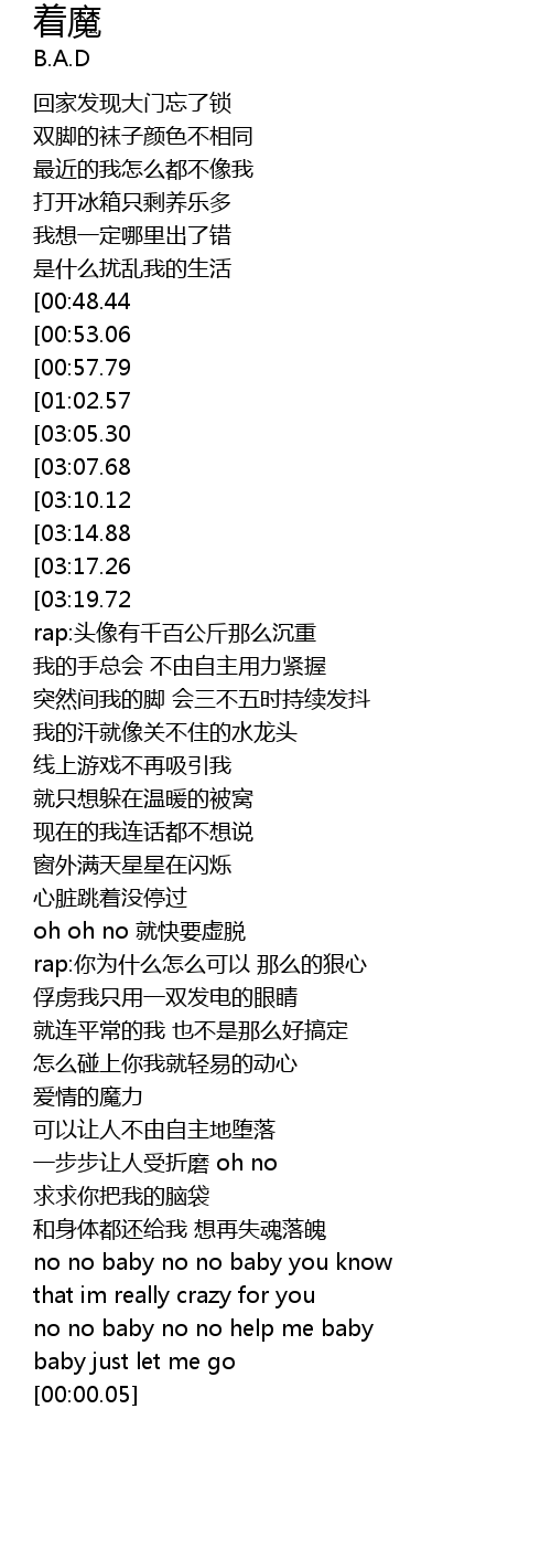 | [03:45.61][03:05.30][02:15.50][01:07.67] | hey you bad girl 我已为你着了魔 |