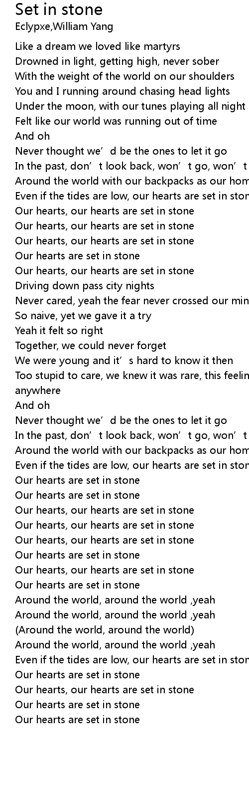 | [02:30.647] | Our hearts are set in stone |