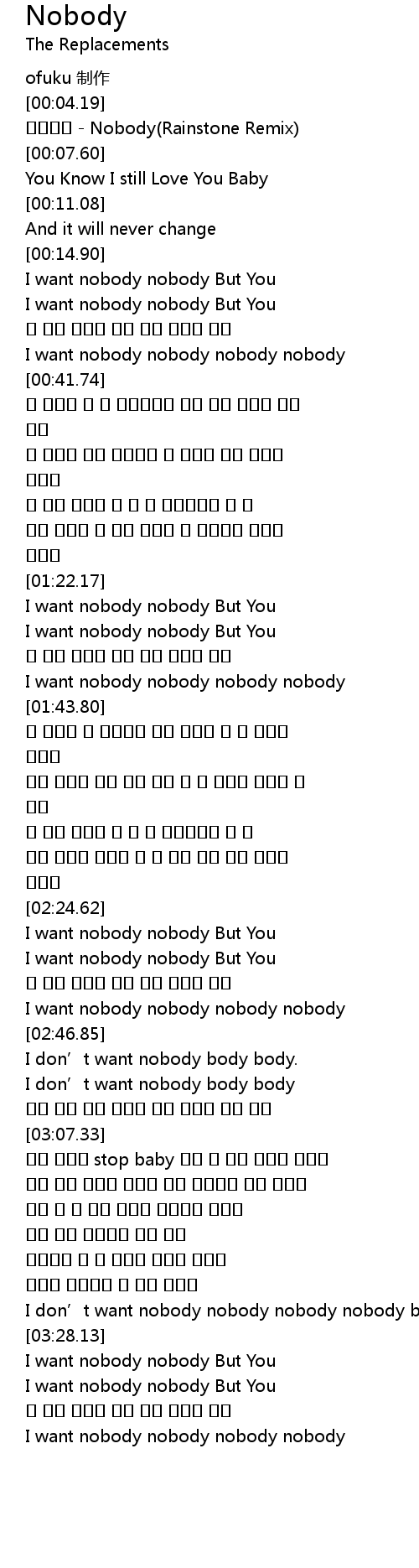 | [01:38.46] | I want nobody nobody nobody nobody |