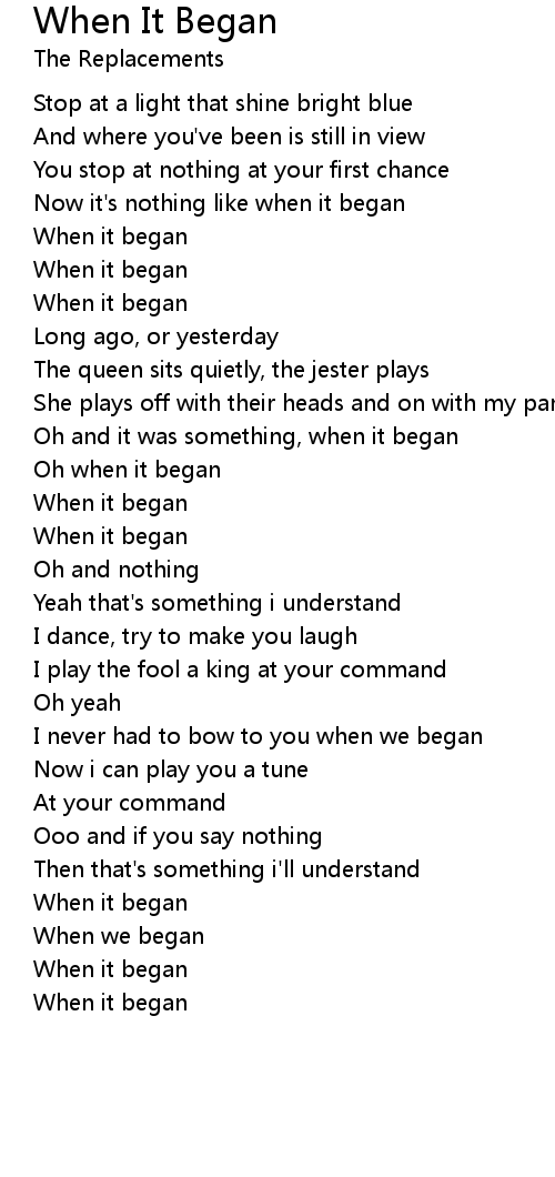 Oh when it began |