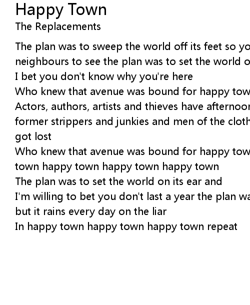 In happy town happy town happy town repeat |