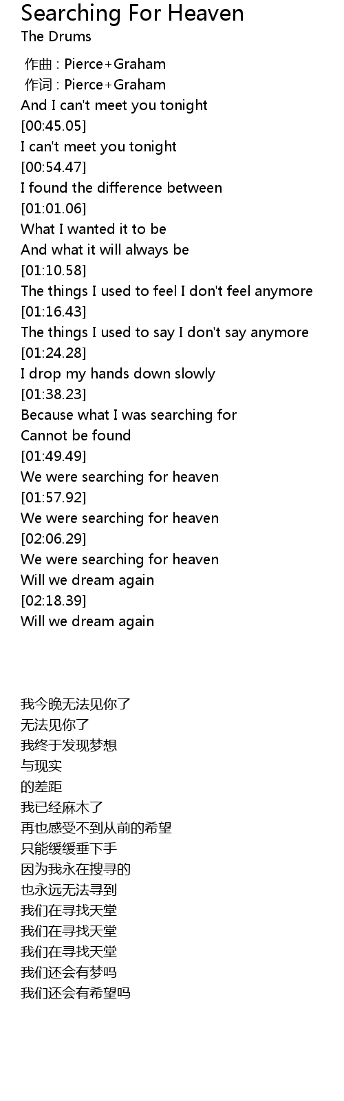 | [02:01.08] | We were searching for heaven |
