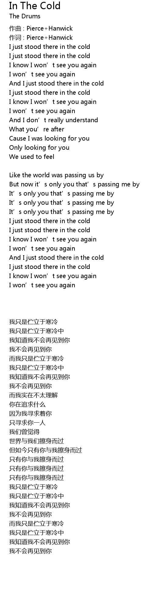 | [00:32.798] | 我只是伫立于寒冷中 |