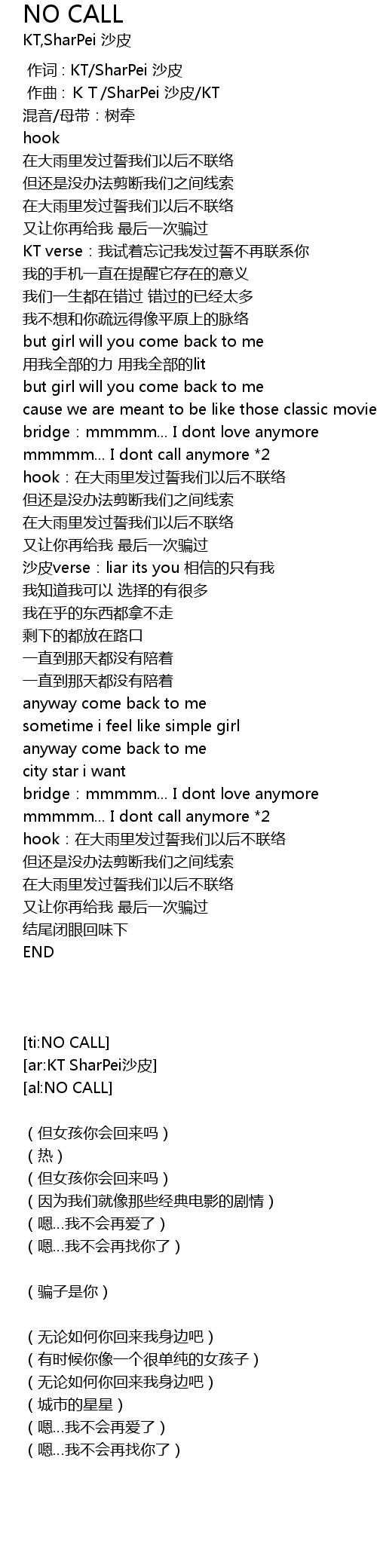 | [00:00.00] | 作词 : KT/SharPei 沙皮 |