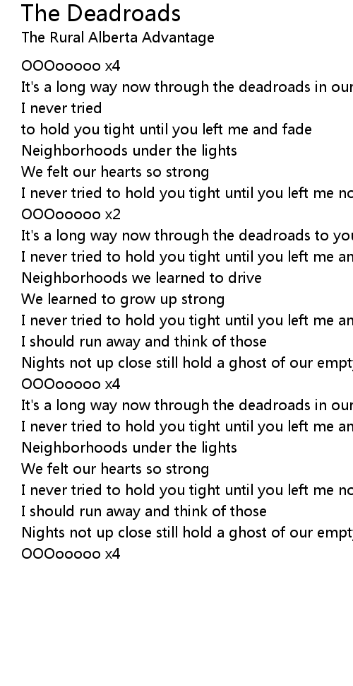 It's a long way now through the deadroads in our hometown |