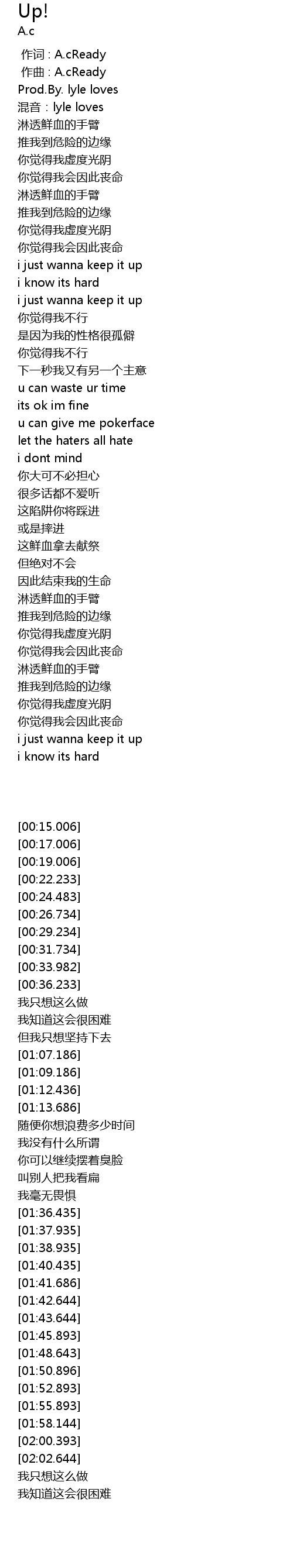 | [00:00.000] | 作词 : A.cReady |