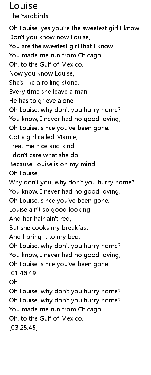 [03:05.62] Oh Louise, why don't you hurry home?