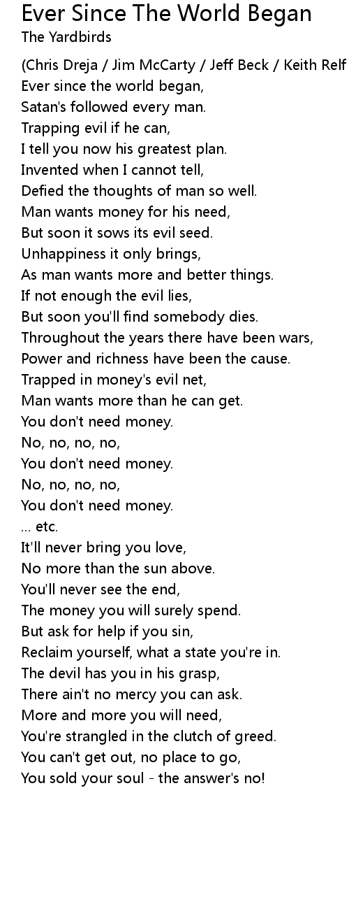 (Chris Dreja / Jim McCarty / Jeff Beck / Keith Relf / Paul Samwell-Smith) |