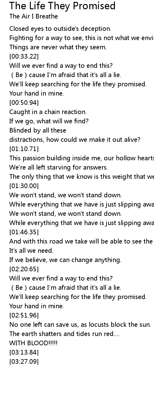 | [00:44.30] | We' ll keep searching for the life they promised. |