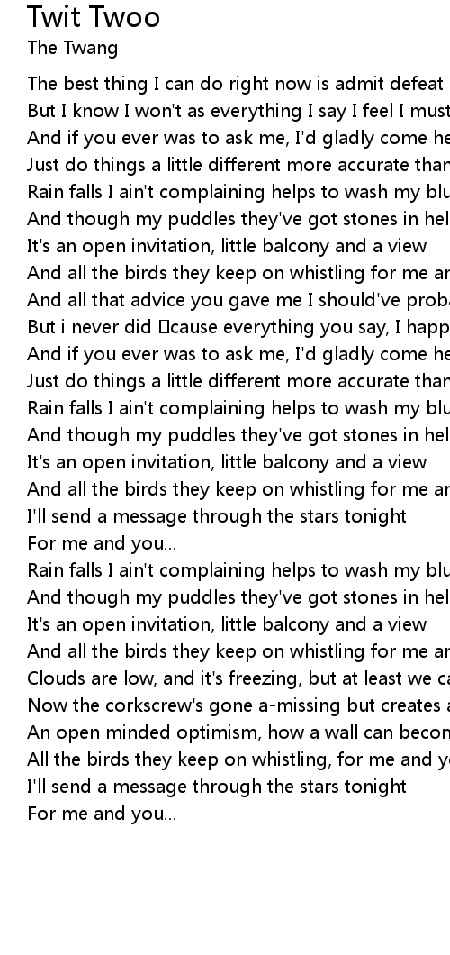 | 歌曲 | Twit Twoo |