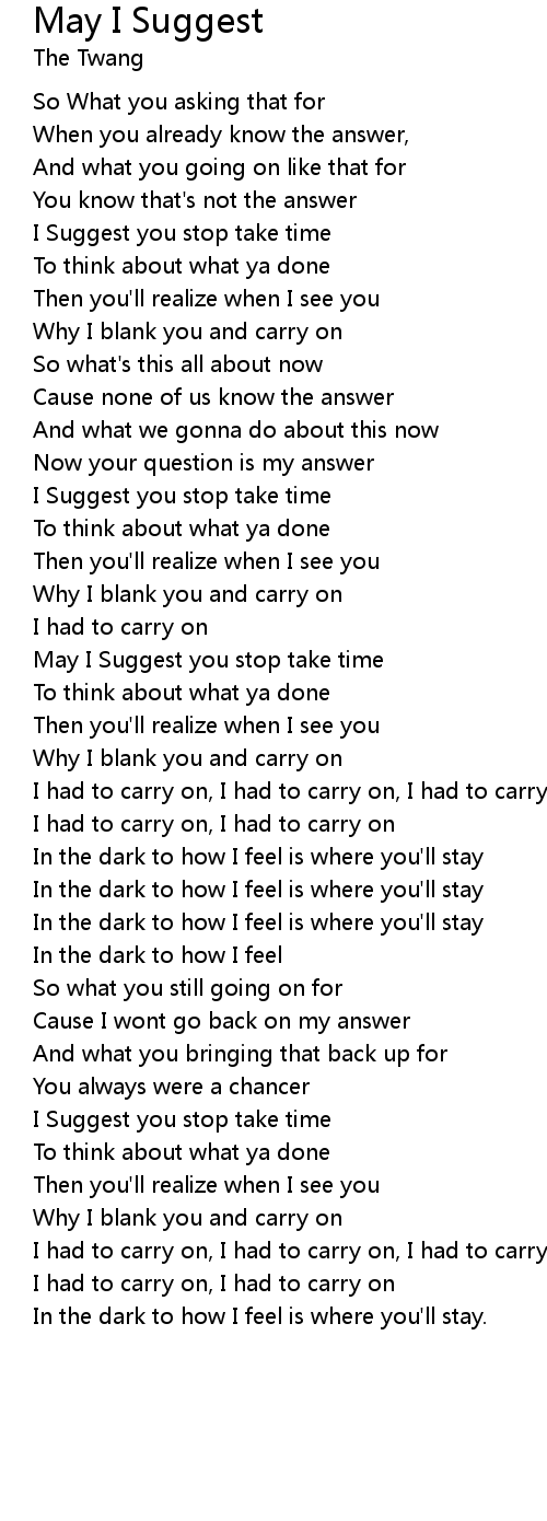 May I Suggest you stop take time |