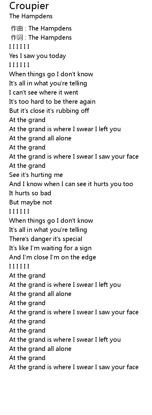 | [02:22.29] | At the grand is where I swear I saw your face |