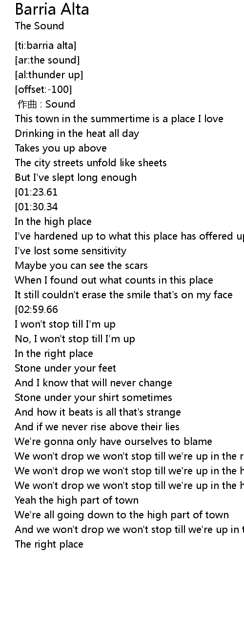 | [01:14.46][01:30.34] | I won' t stop until I' m up |