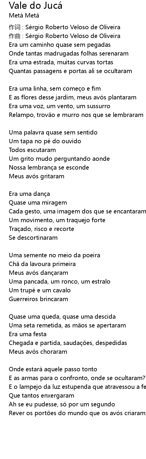 | 作词 : Sérgio Roberto Veloso de Oliveira | |