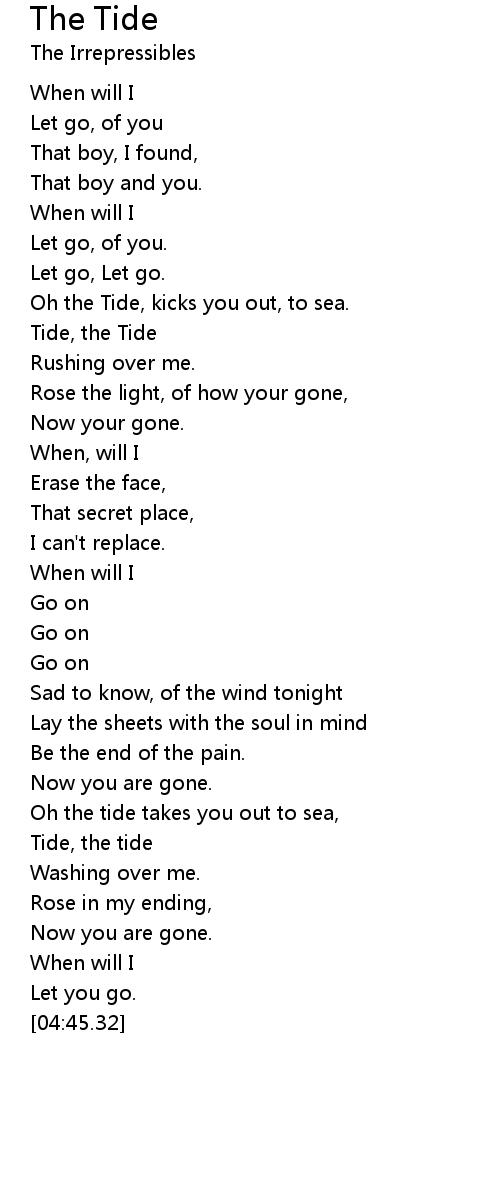 Oh the Tide, kicks you out, to sea. |