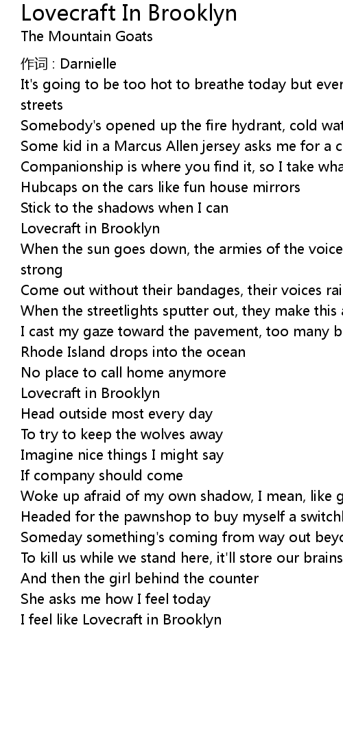 | 歌曲 | Lovecraft In Brooklyn |