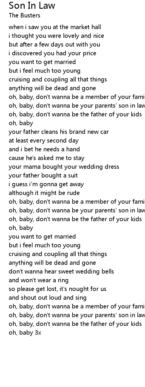 oh, baby, don't wanna be your parents' son in law |