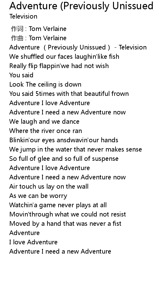 | [00:00.541] | Adventure (Previously Unissued) - Television |