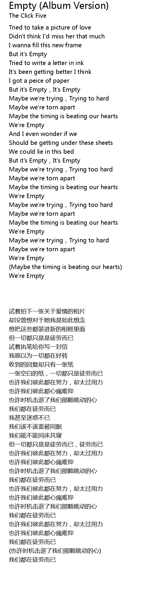 | [00:50.100] | But it' s Empty, It' s Empty |