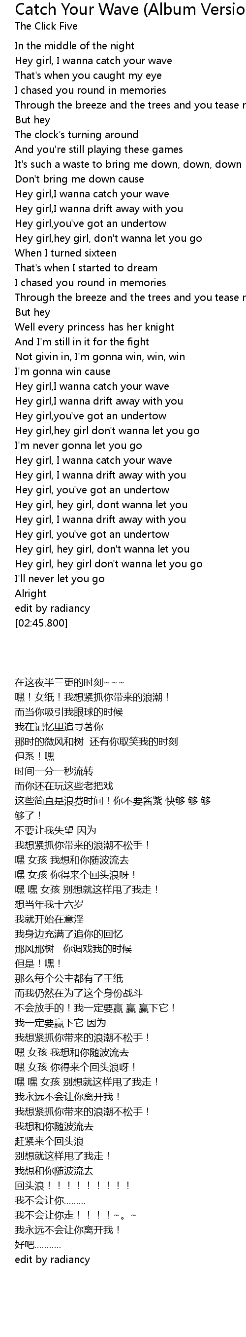 | [00:43.199] | Hey girl,I wanna catch your wave |