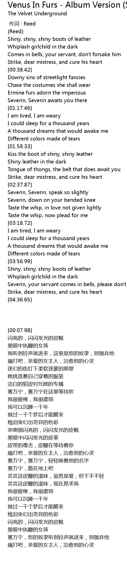| 歌曲 | Venus In Furs - Album Version (Stereo) |