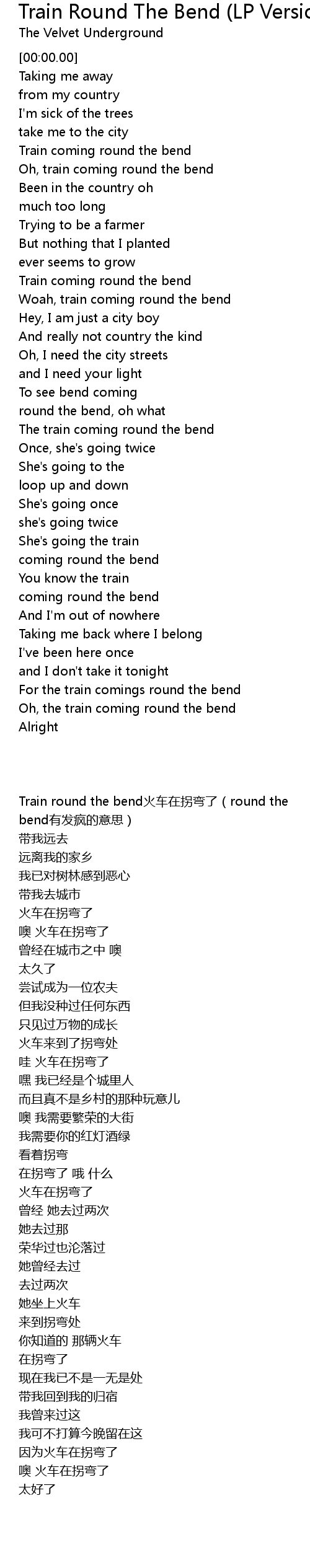 For the train comings round the bend |