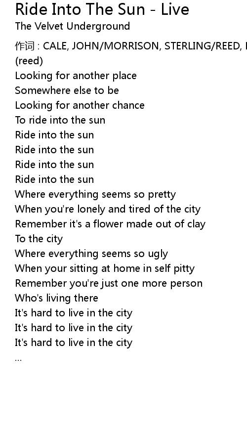 | 作词 : CALE, JOHN/MORRISON, STERLING/REED, LOU/TUCKER, MAUREEN | |
