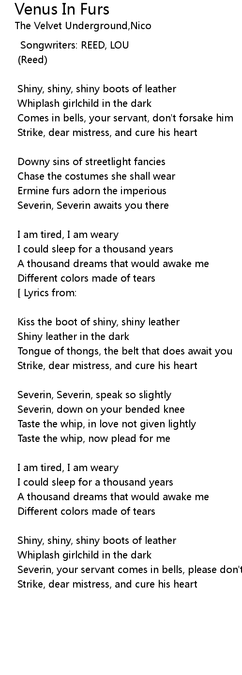 [ Lyrics from: http://www.lyricsfreak.com/v/velvet+underground/venus+in+furs_20143887.html ] |