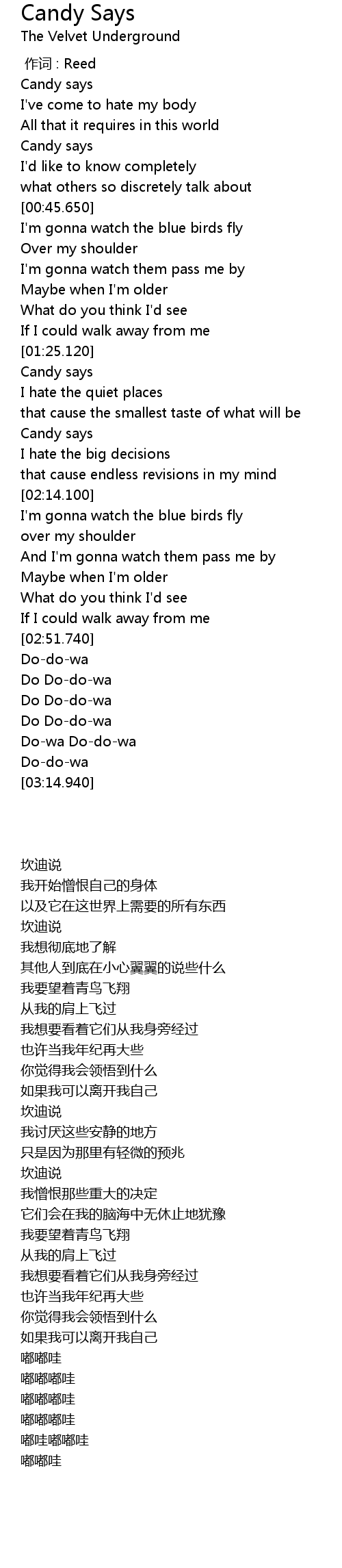 | [00:45.770] | I' m gonna watch the blue birds fly |