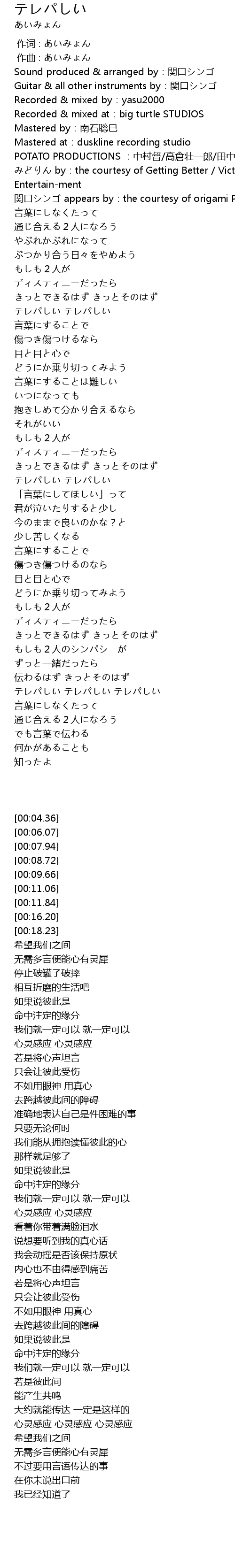 | [00:04.36] | Sound produced & arranged by:関口シンゴ |
