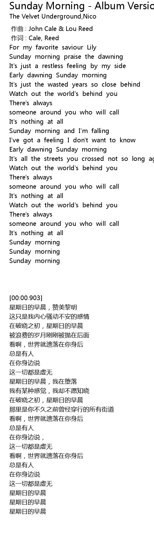 | [00:00.00] | 作曲 : John Cale & Lou Reed |