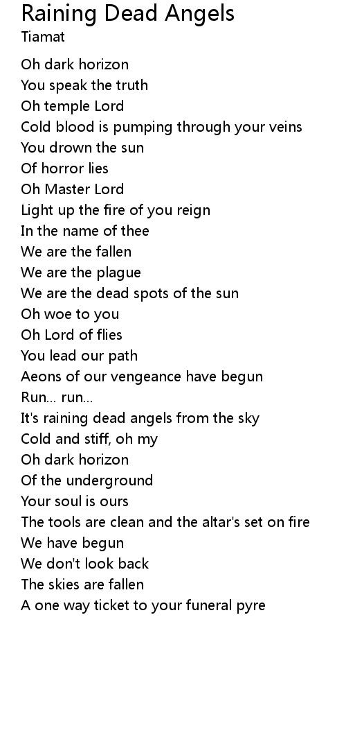 | It's raining dead angels from the sky | |