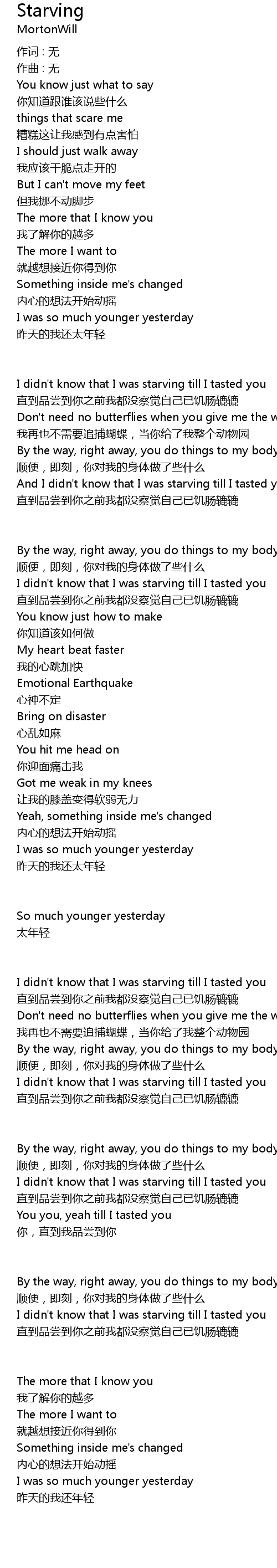 | 歌曲 | Starving |
