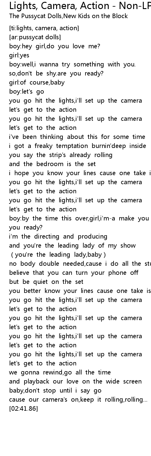 | [02:23.71] | cause our camera's on,keep it rolling,rolling... |